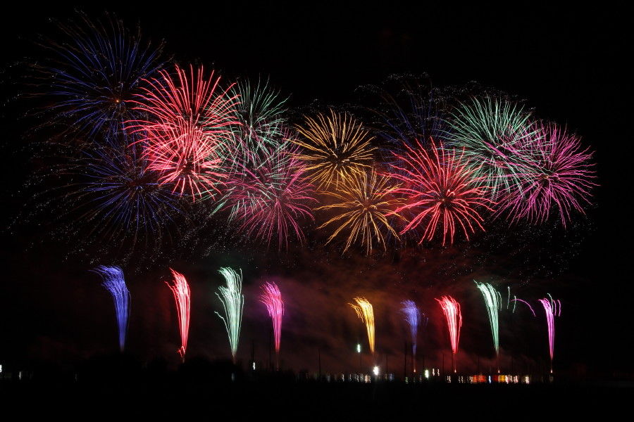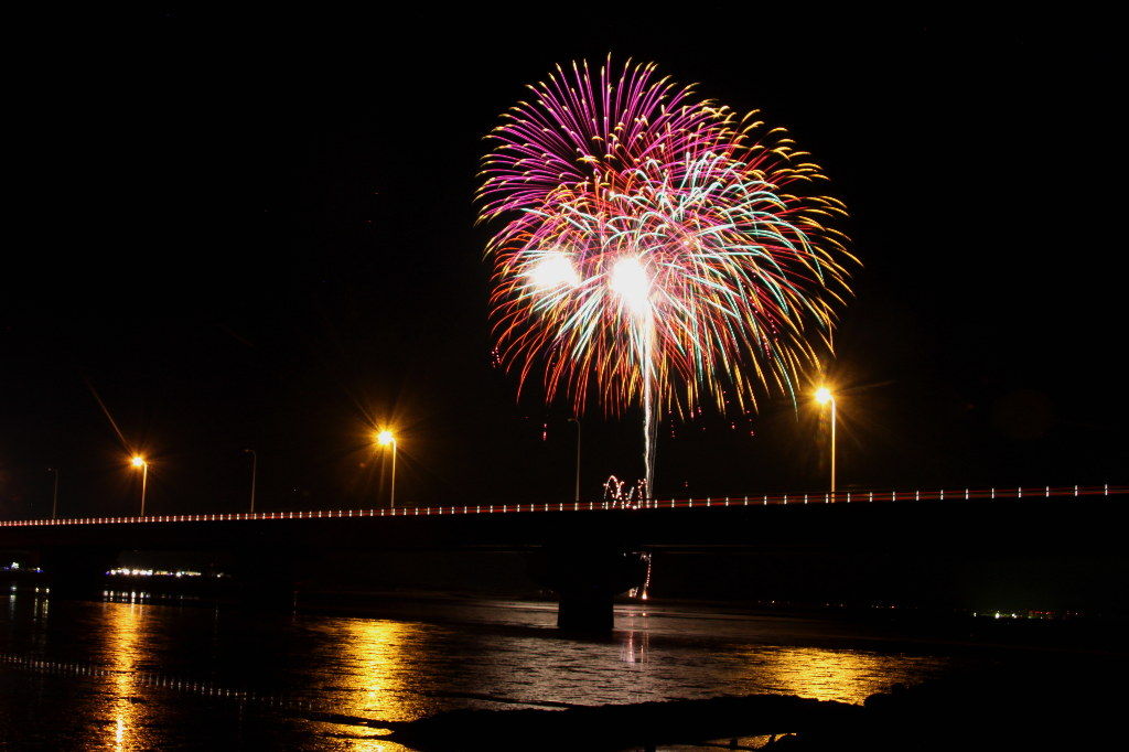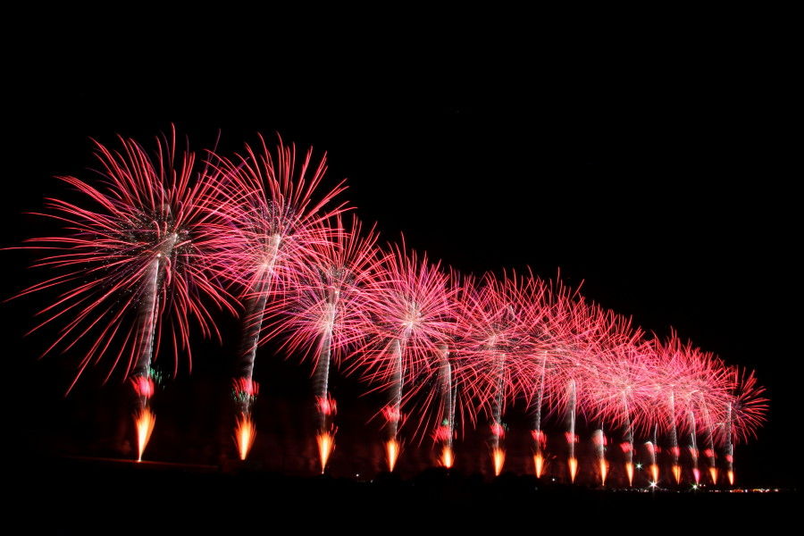 正面には赤い月もぼんやりと出て、何だかちょっと幻想的でもあります。
