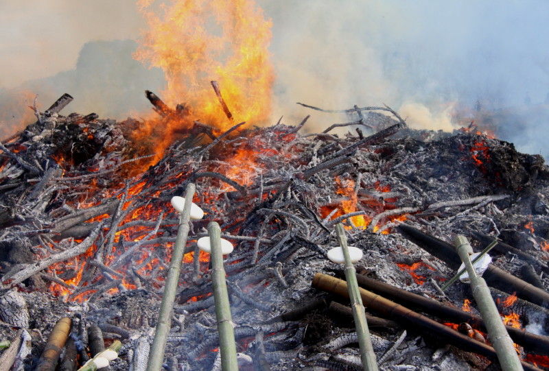 やぐらに火を放ち、新たな年の五穀豊穣、無病息災を祈ろうというものです。
