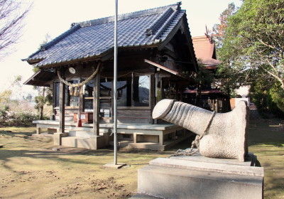 下の画像、狛犬の後ろの右側をよく見ると・・・↓ 石で作られた、かなりリアルなご神体がありました。