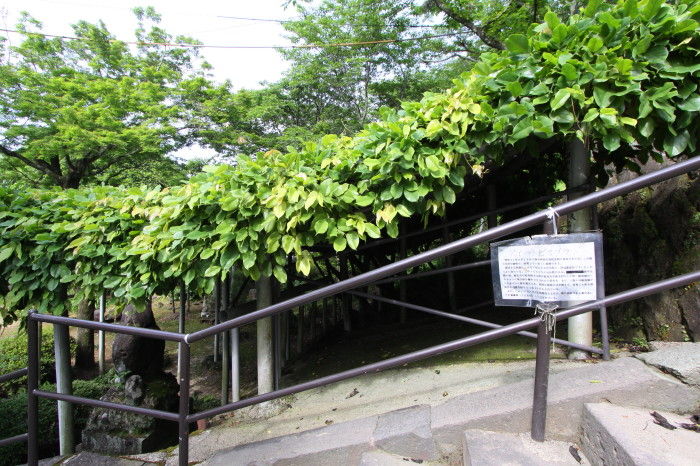 2016年05月23日 アイラトビカズラと相良観音 5月中旬、熊本県山鹿市菊鹿町に行ってきました。ここにはアイラトビカズラという珍しい花の自生地があるのです。国の天然記念物にも指定されていて、毎年4月下旬から5月上旬にかけて濃い紫色の葡萄のような型の花を咲かせます。案内板がある石段を上ると立派なアイラトビカズラの棚がありました。さすがに時期を過ぎて花は少なかったのですがそれでも紫色のちょっと妖艶な花を見ることが出来ました。そのアイラトビカズラの自生地から数百メートル奥に行った所には相良観音があります。古くから安産・子授け、縁結びにご利益があると言われているお寺です。ここにも石段の途中に自生地がありますが、今年は咲き具合が良くなかったらしいです。帰りに参道のお店で名物の「くりまんじゅう」を買って帰りました。 ニッケの葉が付いていて、ほのかに風味が漂います。 タグ :#熊本県