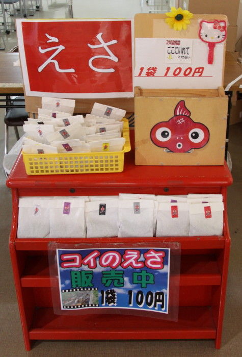 立体映像を楽しんだ後は、コイのえさを買って池の金魚にあげてみました。