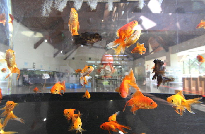 これは360度のスクリーンに金魚に関する立体映像が映し出されるもので