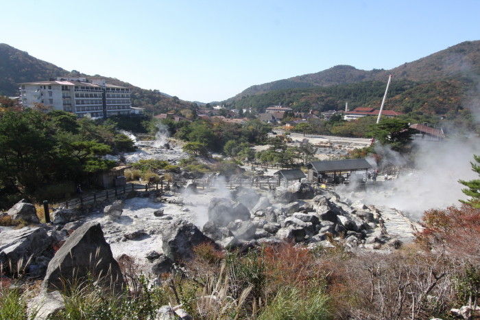 長崎県雲仙市の雲仙地獄は温泉街の中にあって、この地の代表的な観光名所でも