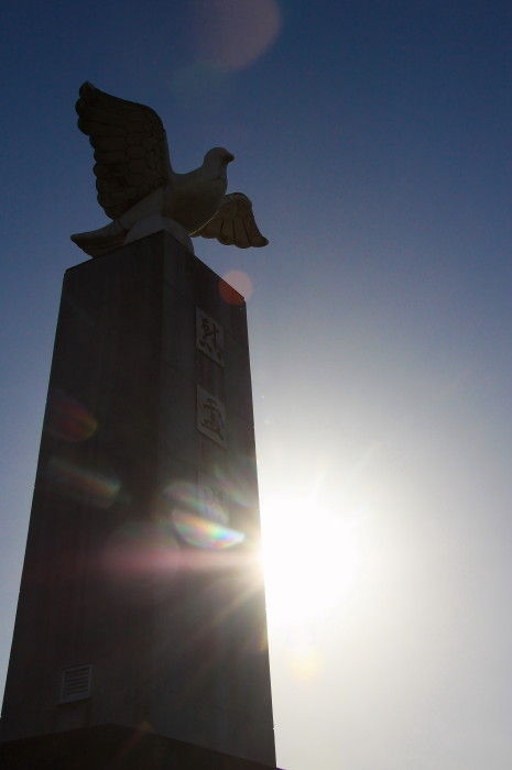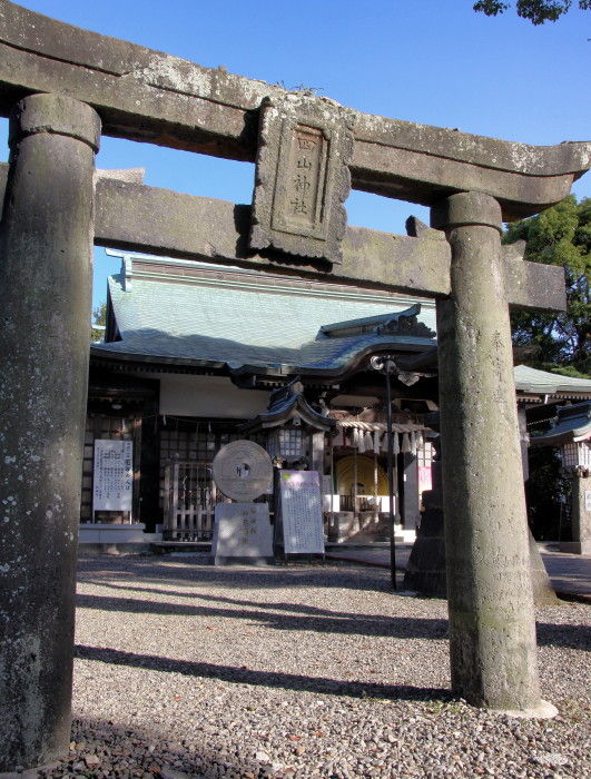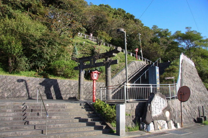 2018年11月20日 四山神社 熊本県荒尾市大島にある四山神社 (よつやまじんじゃ)は標高56mの四山の山頂にある神社です。秋のバラが咲く「おもやい市民花壇」から見た四山です。塔の向こう側に神社があります。神社までは車でも行けますがこの311段の階段を上って参拝します。この石段は結構きついかもです。慰霊塔と灯台がある展望広場に着きました荒尾市慰霊塔戦没者慰霊のために昭和38年荒尾市が建立したものです。三池港灯台昭和26年に設置されたもので島原湾唯一の大型沿岸灯台です。対岸には島原半島が見えます。大吉稲荷神社手水舎狛犬春と秋の「こくんぞさん祭り」には多くの参拝客でにぎわいます。福銭五円玉の案内板。神殿玉垣内には四山古墳があります。6世紀後半の横口式巨石墳は虚空蔵菩薩降臨の地とも言われています。四山神社が「こくんぞさん」と呼ばれる所以です。最後におみくじをひいて帰りました。まずまずの運勢でした。 タグ :#熊本県