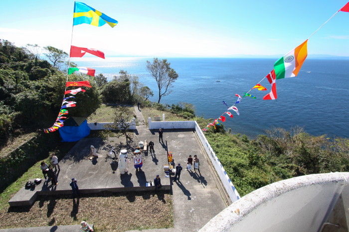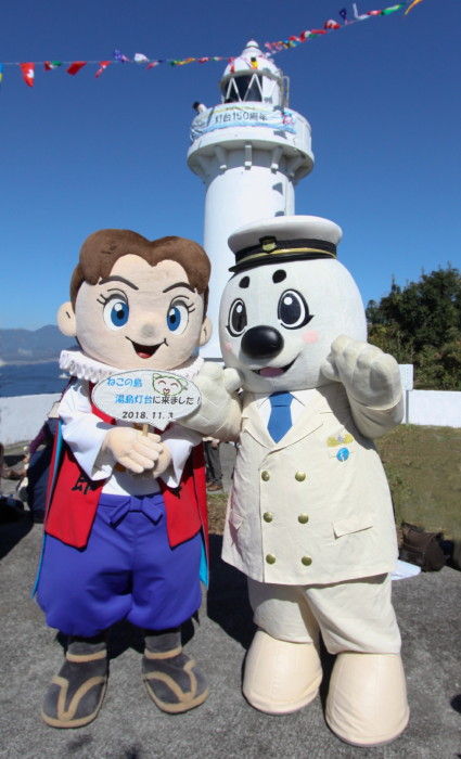 2018年11月08日 湯島灯台一般公開 11月3日 (土、祝) 一日限定で一般公開された熊本県上天草市の湯島にある湯島灯台へ行ってみました今回はツアーを利用して鳩之釜港からチャーター船で湯島へ渡ります。約20分で湯島に到着しました。港から海岸線を歩き、湯島灯台へと向かいます11月1日の「灯台の日」に合わせて3日(土、祝)に普段は見ることができない内部が一般公開されました。1916年(大正5年)の初点灯から100年以上経っている湯島灯台ですが当時のままの姿で残っており「日本財団」と「一般社団法人 日本ロマンチスト協会」から「恋する灯台」として認定も受けています。猫の島ということで地元の人によって描かれた猫や歩道には肉球も描かれています。中にはさり気なくハートもあったりして。正面の猫のシルエットの下には「初點 大正五年 十二月一日」という文字が右書きで書かれたプレートもあります。丸いハッチ型のドアから中に入ると正面には太陽電池配電盤その左側の小さなはしごのようならせん階段を上ります。狭い階段をいくつか上り灯台の最高部へ到着しました。テラスから見える島原半島が近く感じます10mの高さから見た風景です。湯島灯台の心臓部とも言える 高光度LED灯器光度3700カンデラ、光達距離12海里(約22km)となっています。上天草市のシンボルキャラクター「上天草四郎くん」と海上保安庁のイメージキャラクター「うみまる」この日は秋晴れの爽やかな天候でおかげさまで湯島のきれいな風景を楽しむことができました。 参加記念の缶バッジ タグ :#熊本県