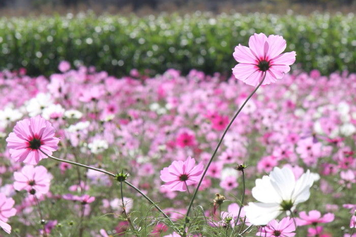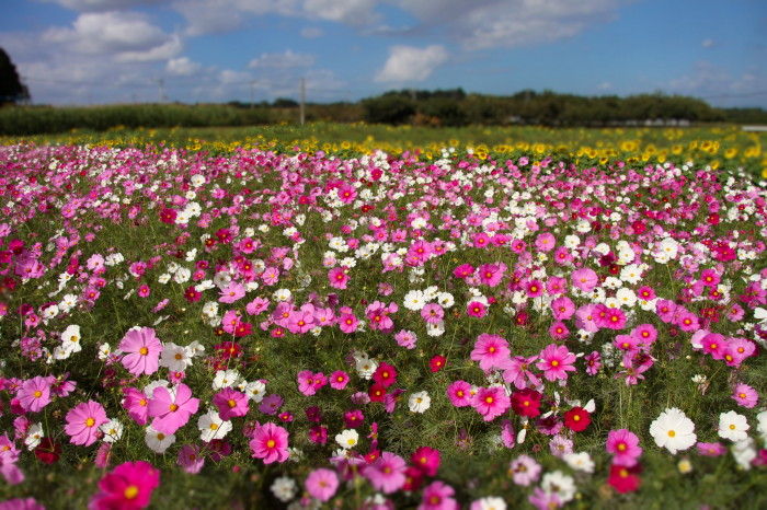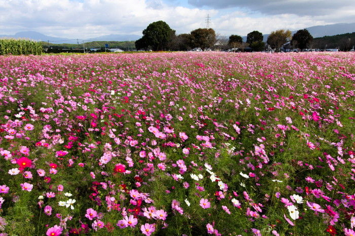 2018年11月02日 道の駅旭志 コスモス園 先週熊本県菊池市にある旭志ふれあいセンター 道の駅「旭志」のコスモス園へ行ってみました道の駅旭志裏の芝生広場奥の5000㎡の畑にはこの時期コスモスが花開きます。今年のコスモス祭りのイベントは終了しましたが コスモスの花自体はまだ十分きれいでした。敷地内にはヒマワリも咲いています。ハートのモニュメントは記念写真に良さそう珍しいコスモスも「ダブルクリック」という品種らしいです。写真をダブルクリックすると大きくなります。コスモスを見学した後は道の駅内にある「レストラン食彩館」で「肉汁ハンバーグステーキセット」を食べてみましたここでは地元の特産の旭志牛が味わえます写真左側の熱したペレットにハンバーグを乗せて焼きながら食べるというスタイルでジューと焼ける感じがたまりません。 タグ :#熊本県