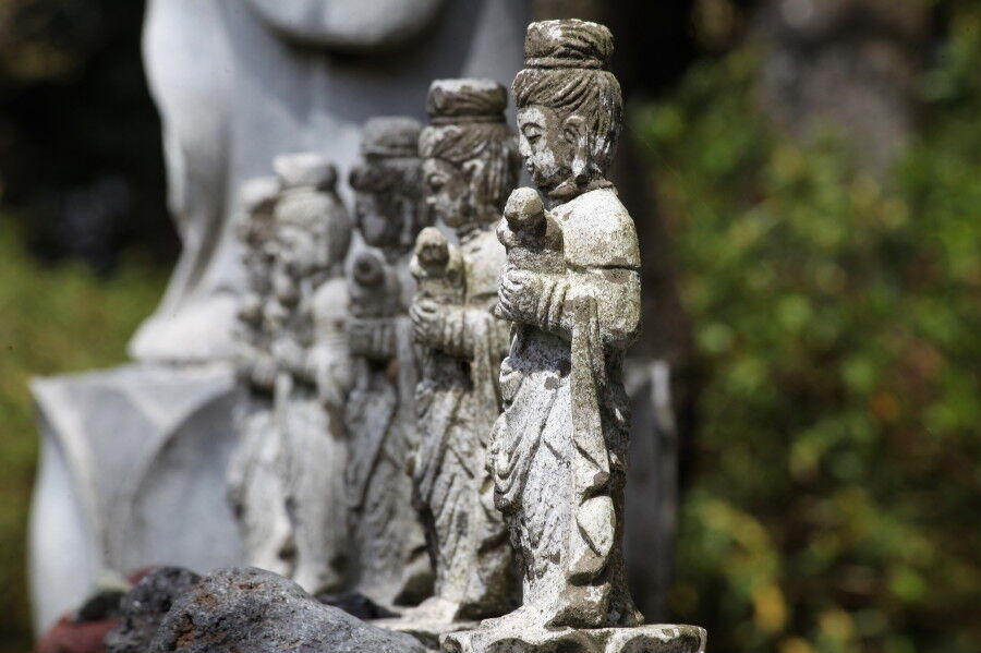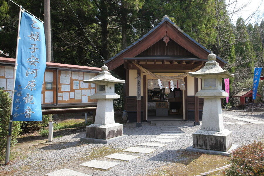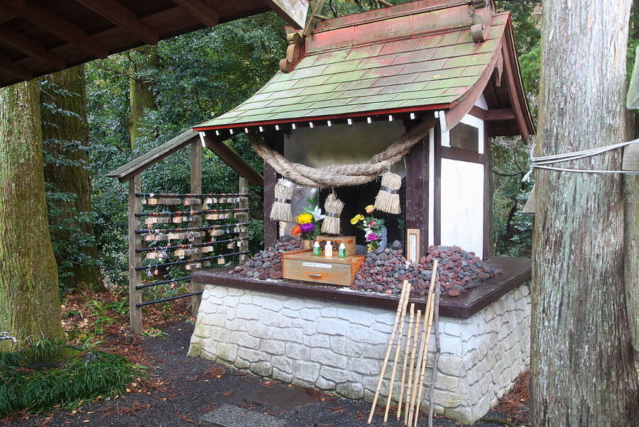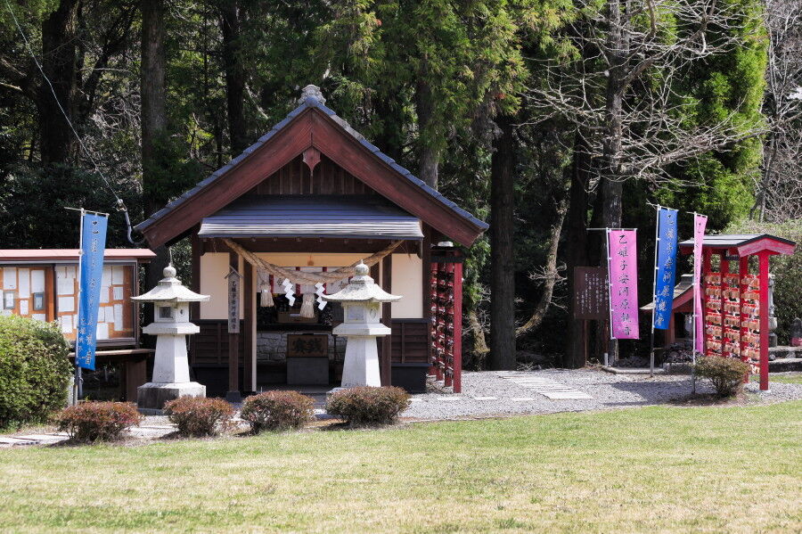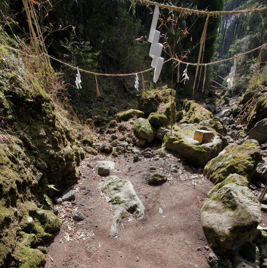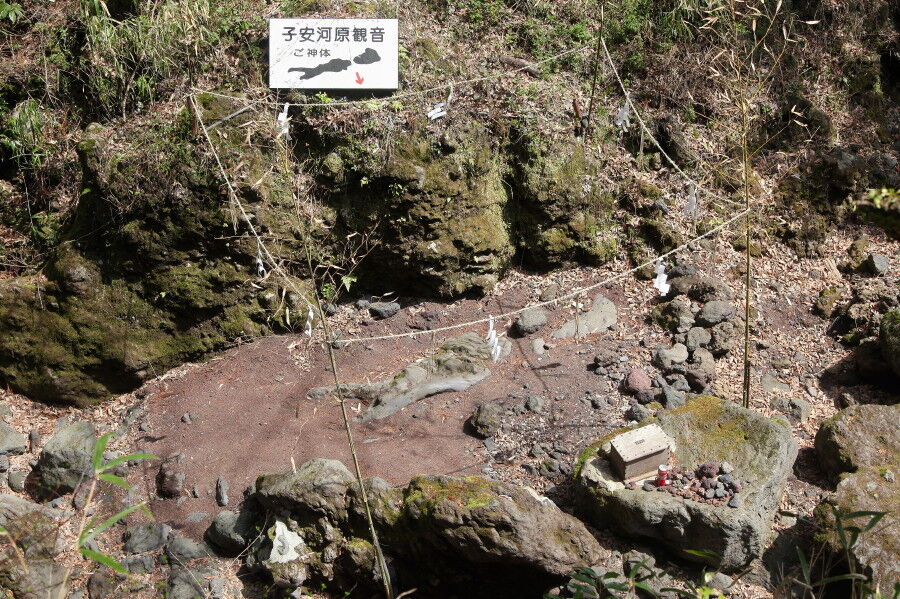 本堂横から石段を上って行くと山の斜面によりかかるように立つ