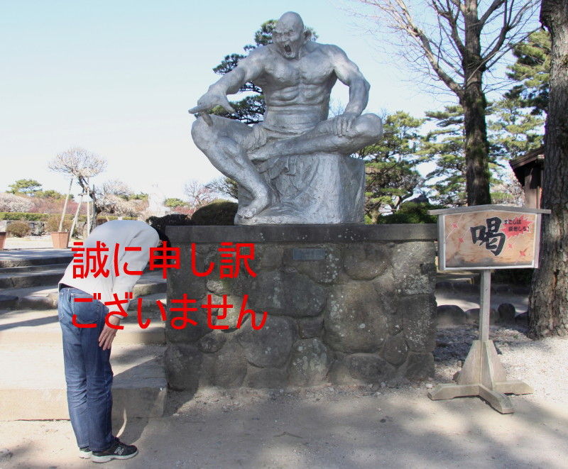 何で俺だけ他の像と違って青ガエル色なんだよー